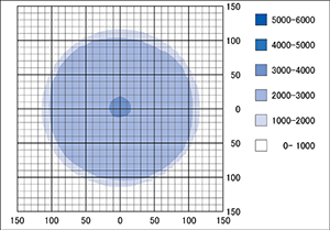 采用紫外线LED,输出更强 与SL-LED3W-FL-UV相比,中心的UV强度大约是SL-LED3W-FL-UV的两倍,并且可以均匀照射。